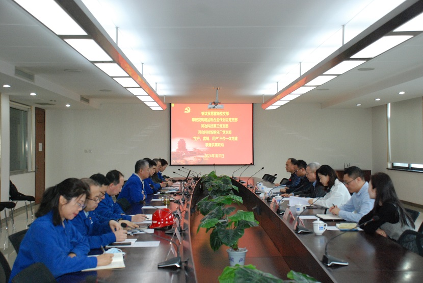 2024年度“產(chǎn)-銷-用三體聯(lián)動”黨建聯(lián)建活動于2024年1月11日在河冶科技舉辦,河冶科技黨委書記、董事長總經(jīng)理米永旺、黨委副書記、常務副總經(jīng)理梁敬斌、工會主席趙金伶、攀鋼釩鈦貿(mào)易公司黨總支書記、總經(jīng)理汪朝云參加了本次活動。